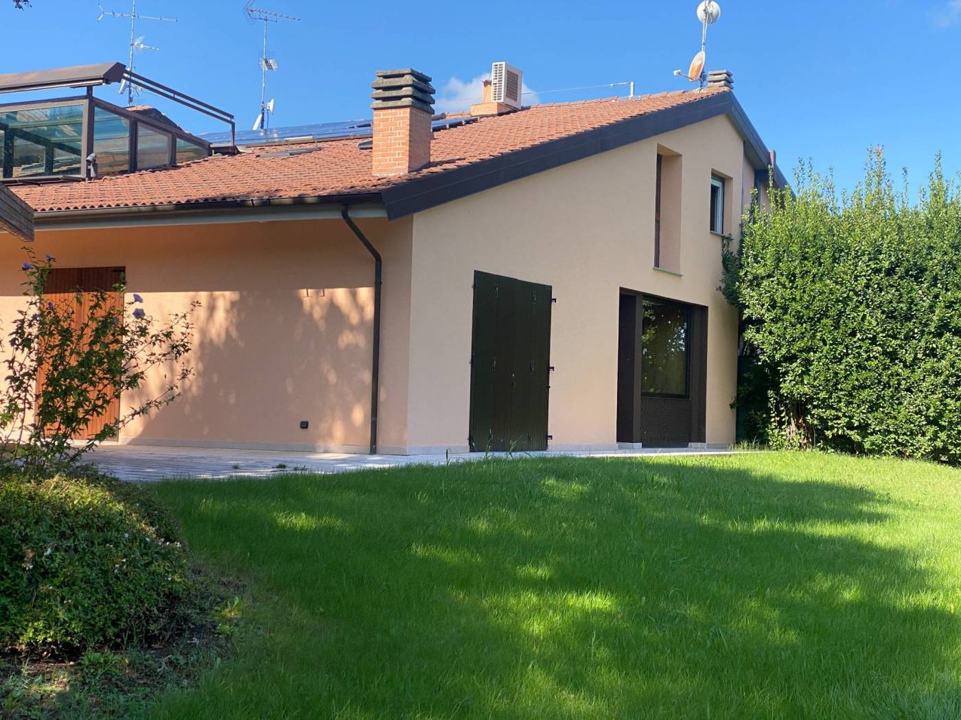 Imola collinare 2 km dalla Curva Tosa, villa panoramicissima, ottimo stato, eleganti finiture, giardino privato recintato mq. 5.000 con alberi alto fusto ed ulivi. Si compone di: ingresso cucina abitabile salone studio 4 camere 5 bagni veranda. Impianto di condizionamento, impianto d'allarme, cancello automatizzato, isolamento a cappotto, pannelli fotovoltaici , caldaia nuova a condensazione, qualificazione energetica A/1 prezzo richiesto euro 690.000 intercasa immobiliare. referente Andrea 3355249188